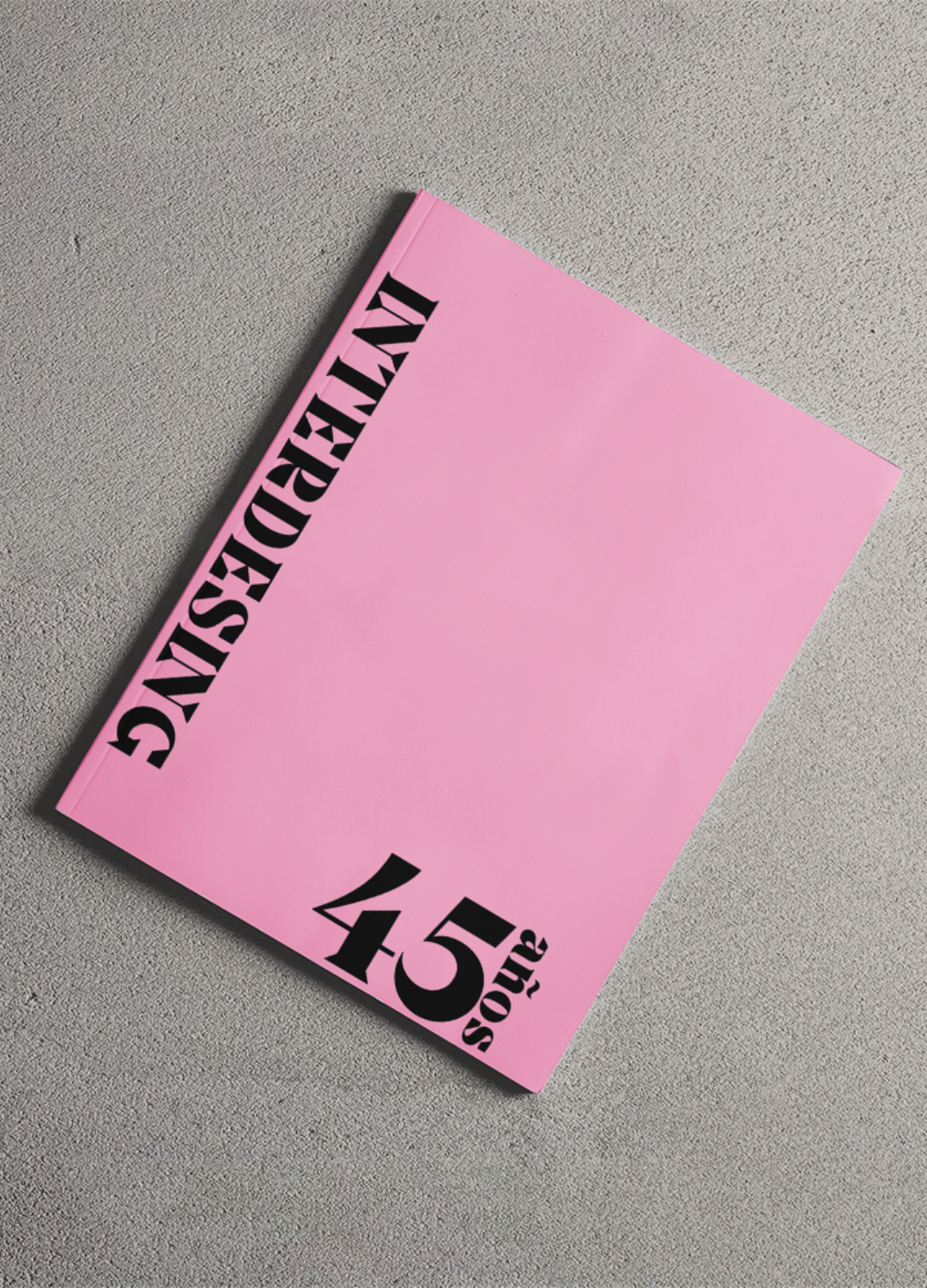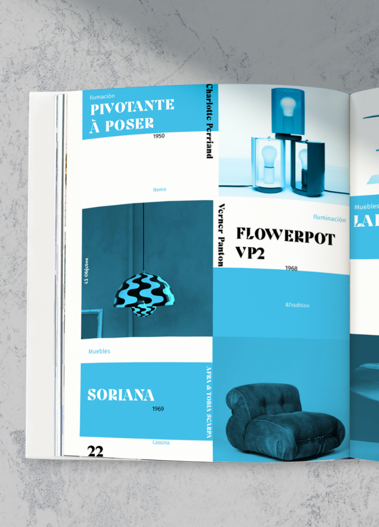 Catalogo 45 años interdesign, tratado de color, diagramación y composición.